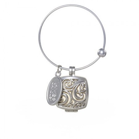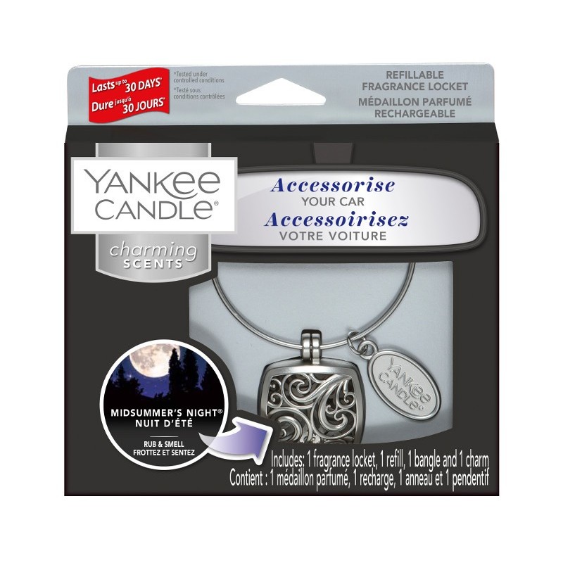 Dieses vierteilige Set beinhaltet den Reif, das nachfüllbare Medaillon, das Yankee Candle-Logo, alles in gebürsteter Nickel-Optik, sowie einen Nachfüller.