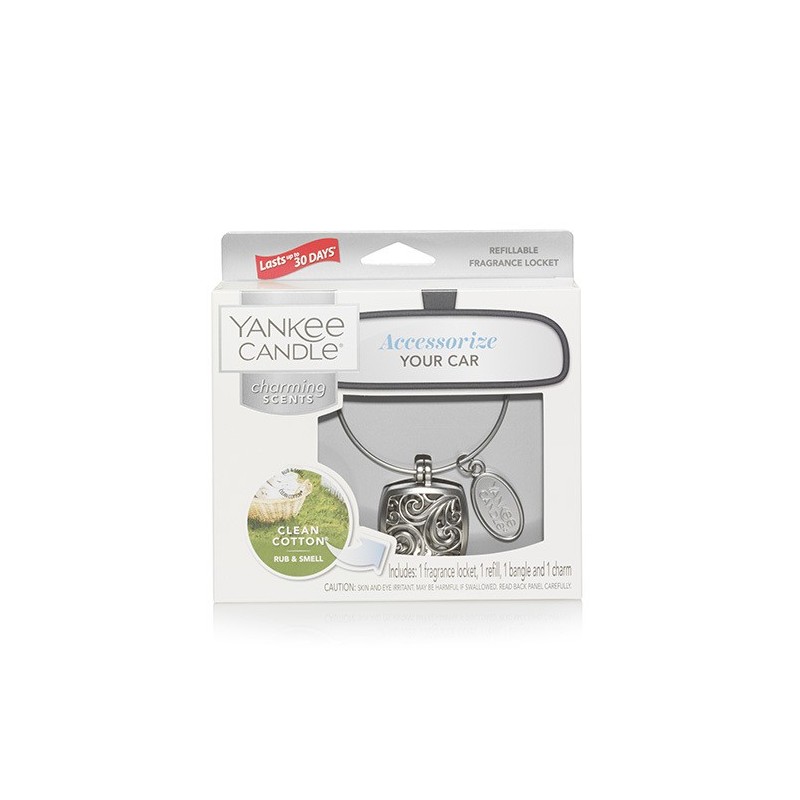 Dieses vierteilige Set beinhaltet den Reif, das nachfüllbare Medaillon, das Yankee Candle-Logo, alles in gebürsteter Nickel-Optik, sowie einen Nachfüller.